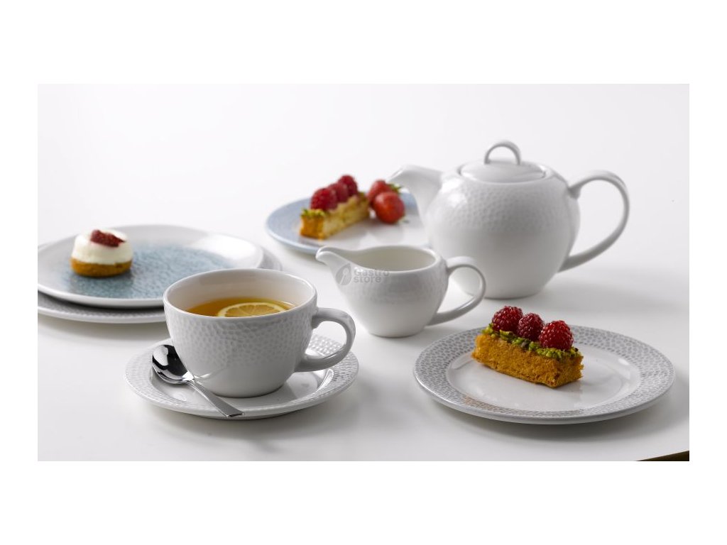 Ručně aplikované barvy v tónech Ocean Blue a Shale Gray skvěle zdůrazňují dekorativní vzor na každém produktu.