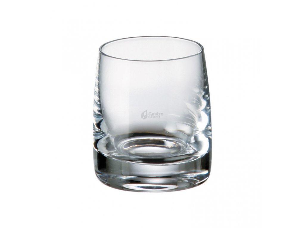 Sklenice vhodná na destiláty, vyrobená z hladkého bezolovnatého foukaného křišťálového skla.