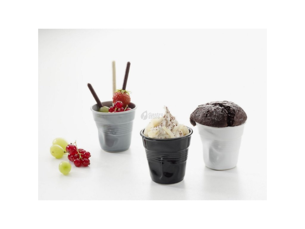 Smaltovaný Froissés hrnek patří mezi nejúspěšnější kousky porcelánu Revol. Jeho nevšední design zaujme každého na první pohled a využijete ho všude, kde si vzpomenete. V tomto praktickém hrnečku v troubě upečete muffiny, suflé nebo jiné moučníky, v mrazáku v něm připravíte zmrzlinu nebo jiné mražené pokrmy a samozřejmě perfektně poslouží při servírování horkých i studených nápojů. Pro jednoduché vyčistění už ho pak stačí jen dát do myčky.