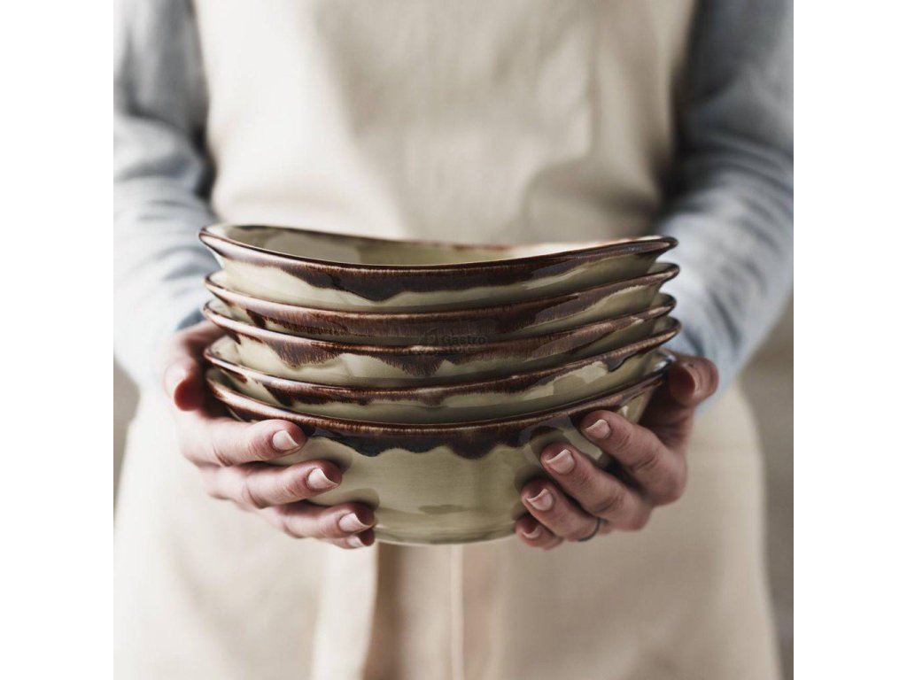 Každý kousek porcelánového nádobí z kolekce Harvest je jedinečný, díky jeho finálnímu ručnímu zdobení v podobě rustikálního hnědého okraje.