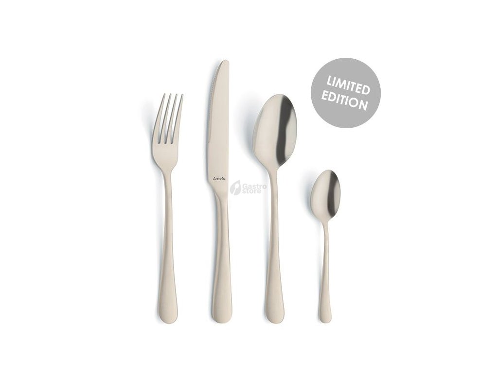 Příbory z řady Amefa Austin se vyznačují jemnou linií a hladkými křivkami. Barva "champagne" je nyní velmi trendy. Můžete ji kombinovat i s jinými kovovými odstíny. Tyto příbory vypadají velmi luxusně, styl Vintage.