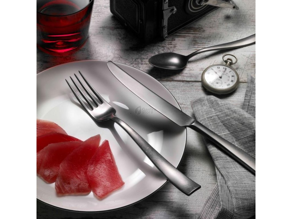 Jídelní nůž z kolekce Palace Alchimique Titanum v matném šedočerném provedení.