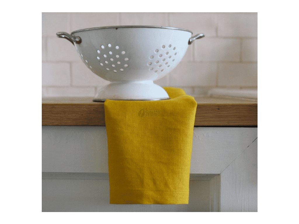 Lněná kuchyňská utěrka v hořčicové barvě z dílny české značky Tululum. Ušito ze 100% měkčeného lnu, vyrobeného v EU.
